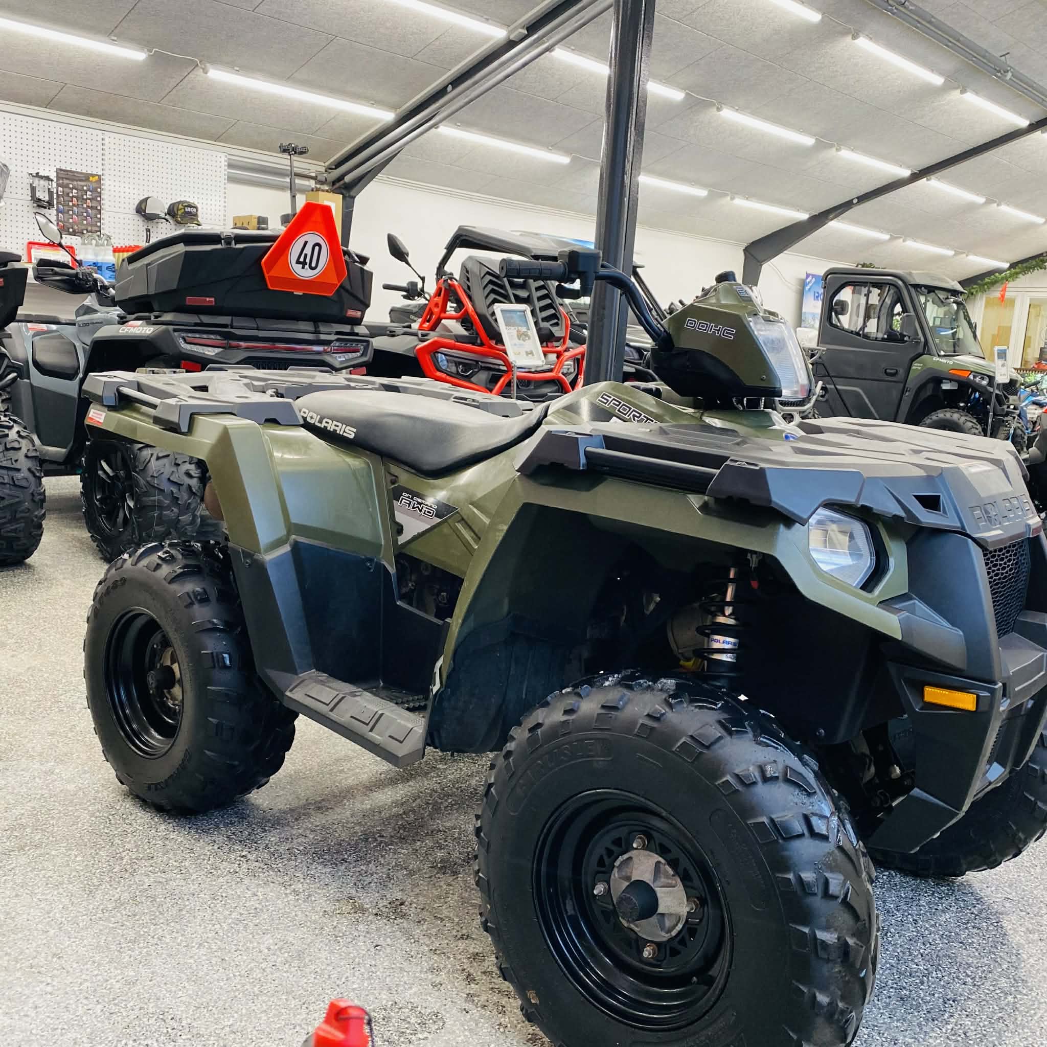 ATV’en har kørt 406 timer og 4.329 km og fremstår som en stærk arbejdsmaskine med masser af anvendelsesmuligheder. Den er udstyret med 4WD (firehjulstræk), som sikrer optimalt greb og stabilitet i både terræn, skov, mark og sne.